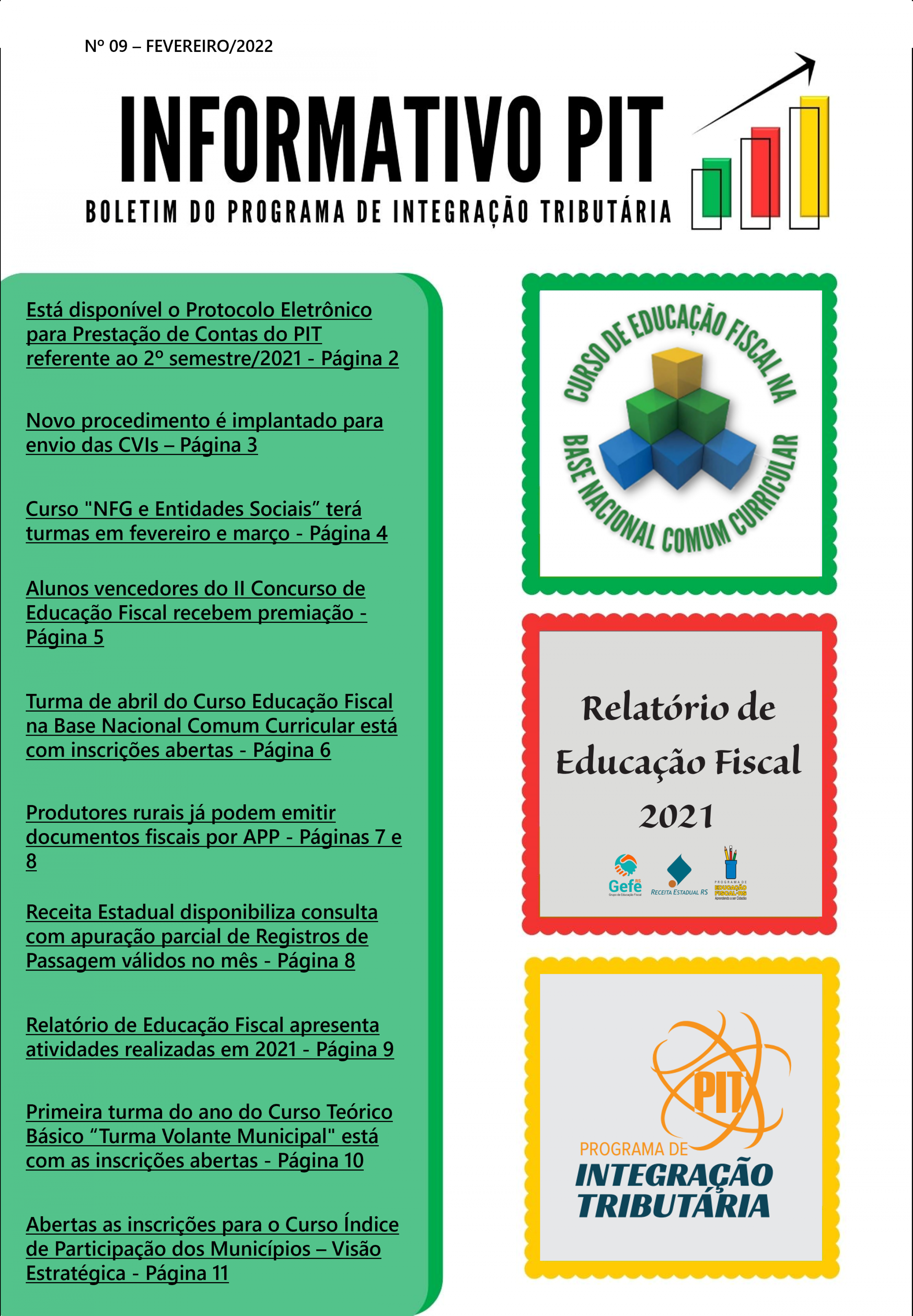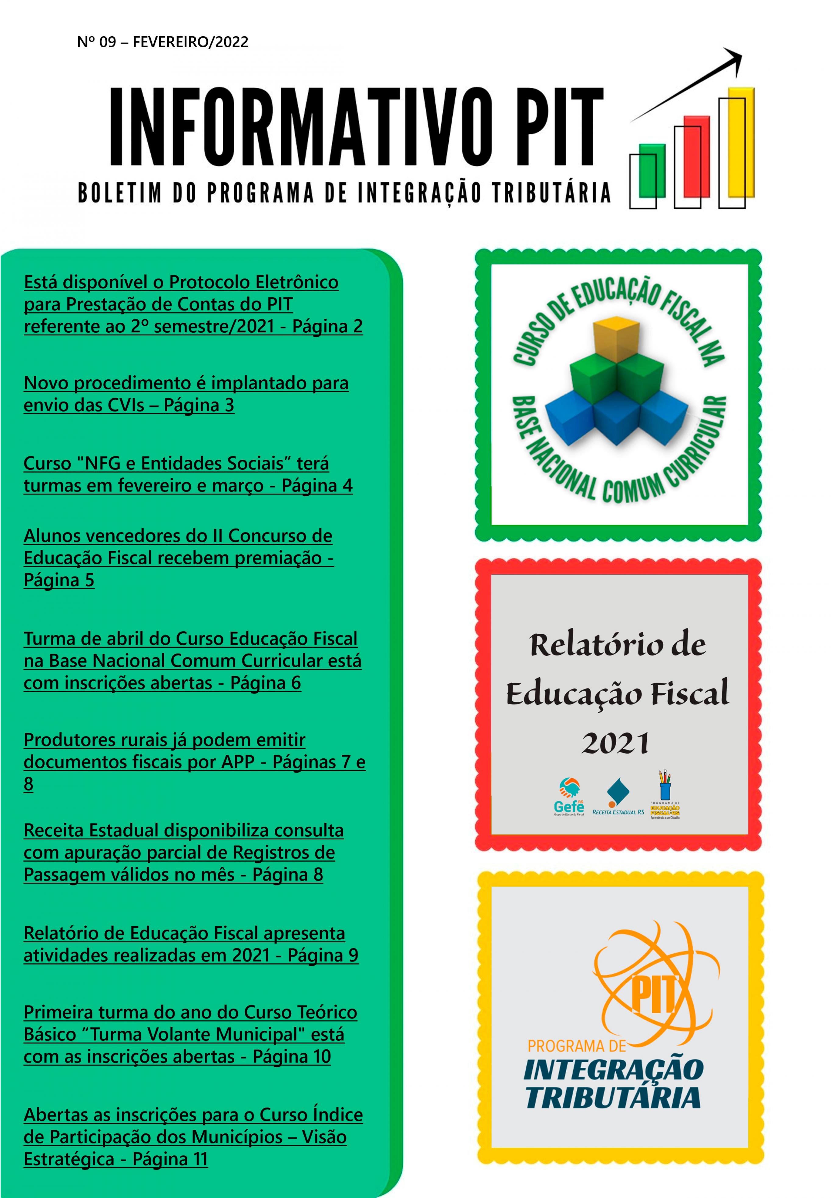 A divulgação deste INFORMATIVO PIT entre os servidores municipais pontua na Ação 1.03 - Divulgação do Programa de Educação Fiscal (divulgar o Programa, as ações ou os trabalhos realizados dentro do Programa, nos meios de comunicação), do Grupo I – Educação Fiscal do PIT. O município que comprovar o envio do boletim aos seus servidores ou que divulgar o Informativo nas plataformas digitais da prefeitura pontuará 3 pontos no PIT deste semestre.