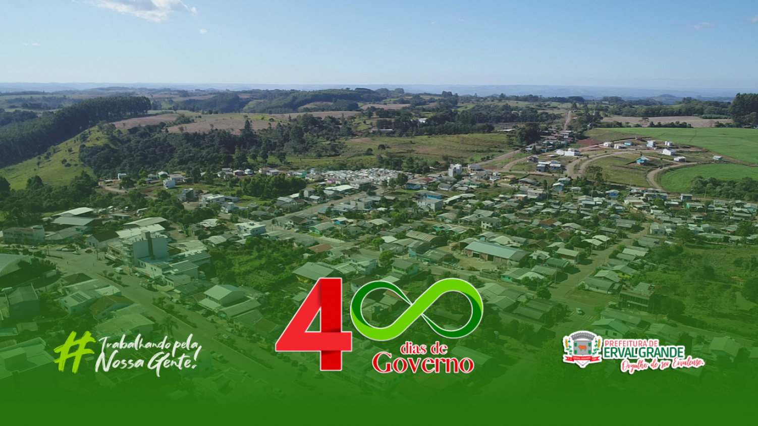 Acompanhe as redes sociais oficiais da Prefeitura Municipal de Erval Grande, e confira nos próximos dias um resumo do trabalho realizado nestes 400 dias de Governo.