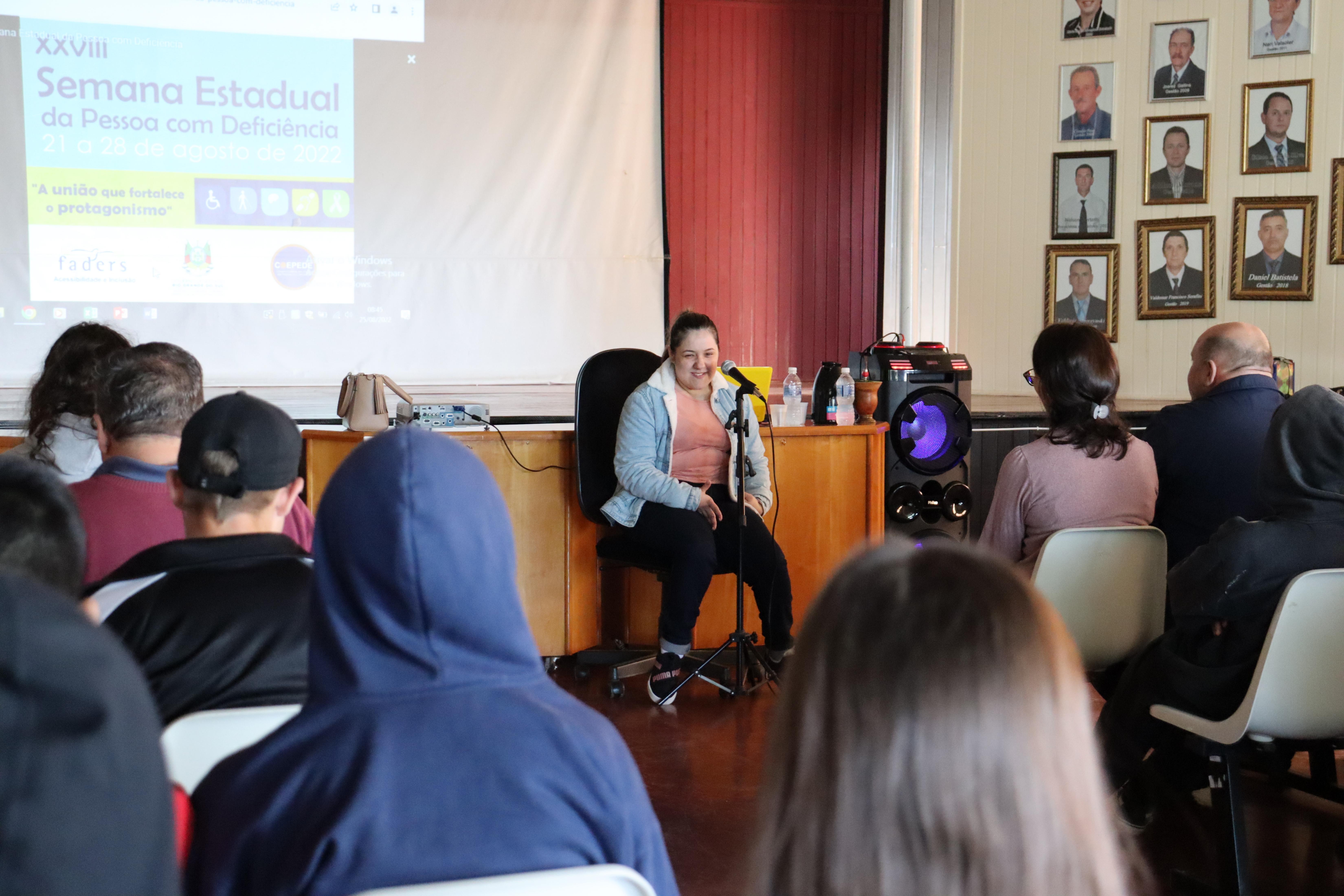 Encerrando as atividades alusivas à semana, no dia 25 de agosto, uma palestra sobre o tema “A magia de incluir e motivar" foi ministrada por Silvana Dezordi que é escritora, palestrante e portadora de paralisia cerebral, uma condição neurológica que compromete parte do movimento dos seus membros superiores e inferiores.