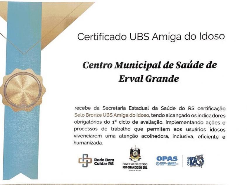 UBS de Erval Grande recebe o Selo de Bronze da Secretaria Estadual da Saúde.