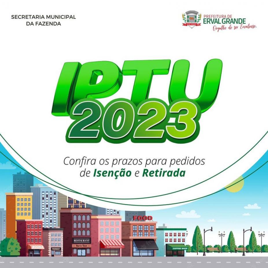 Os pedidos de isenção de IPTU devem ser protocolados até o dia 15 de Fevereiro de 2023, junto a Secretaria da Fazenda.