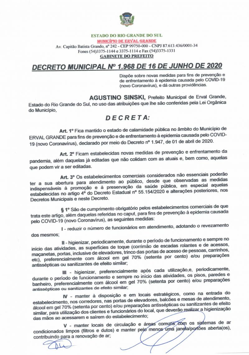 Decreto Municipal N° 1.968 de 16 de Junho de 2020Decreto Municipal N° 1.968 de 16 de Junho de 2020